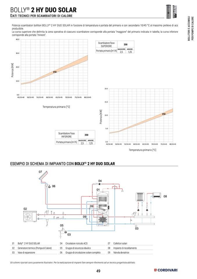 2 HY DUO SOLAR in funzione di temperatura e portata del primario e con secondario 10/45 °C al massimo prelievo di acs