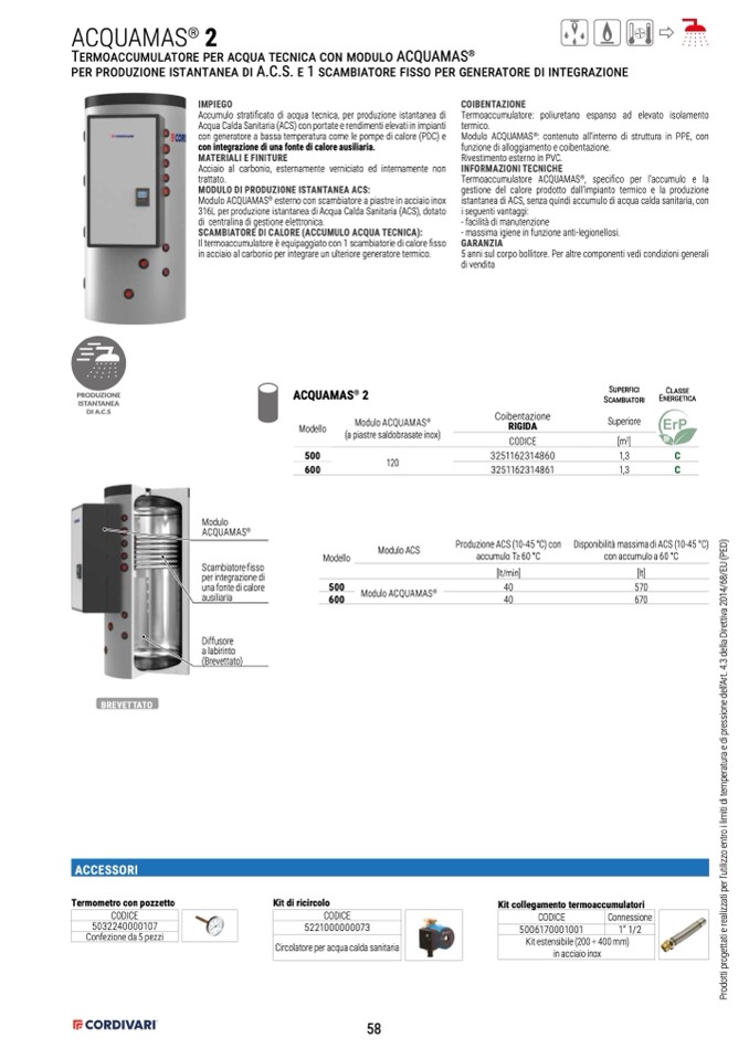 Accumulo stratificato di acqua tecnica, per produzione istantanea di