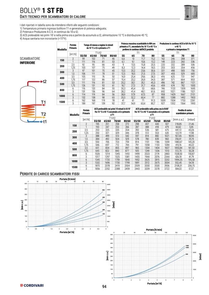 1) Temperatura primario ingresso bollitore T1 e generatore di potenza adeguata;
