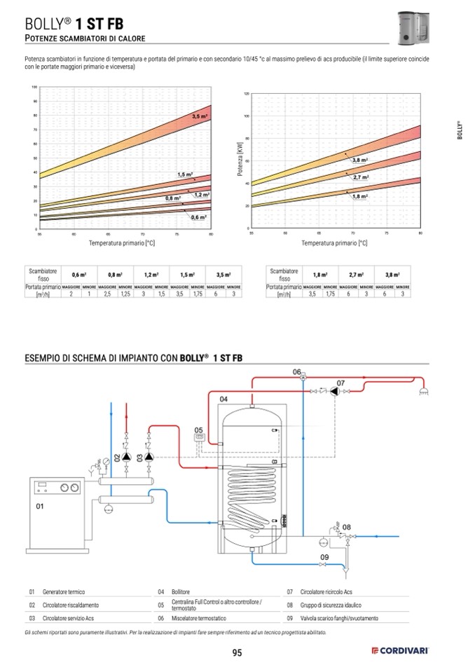 Potenza scambiatori in funzione di temperatura e portata del primario e con secondario 10/45 °c al massimo prelievo di acs producibile (il limite superiore coincide