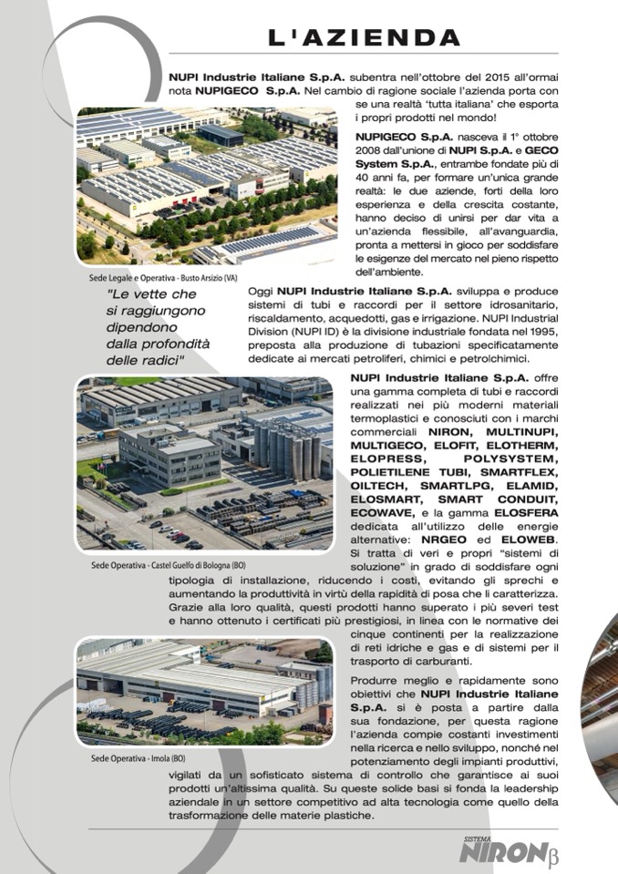 riscaldamento, acquedotti, gas e irrigazione. NUPI Industrial