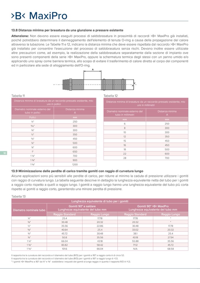 attraverso la tubazione. Le Tabelle 11 e 12, indicano la distanza minima che deve essere rispettata dal raccordo >B< MaxiPro