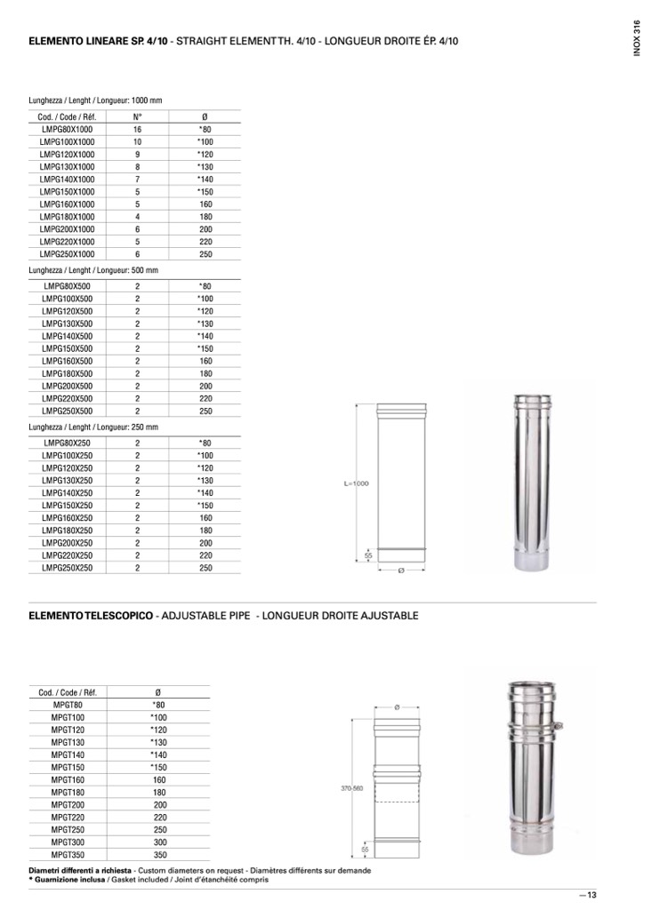 ELEMENTO TELESCOPICO - ADJUSTABLE PIPE - LONGUEUR DROITE AJUSTABLE