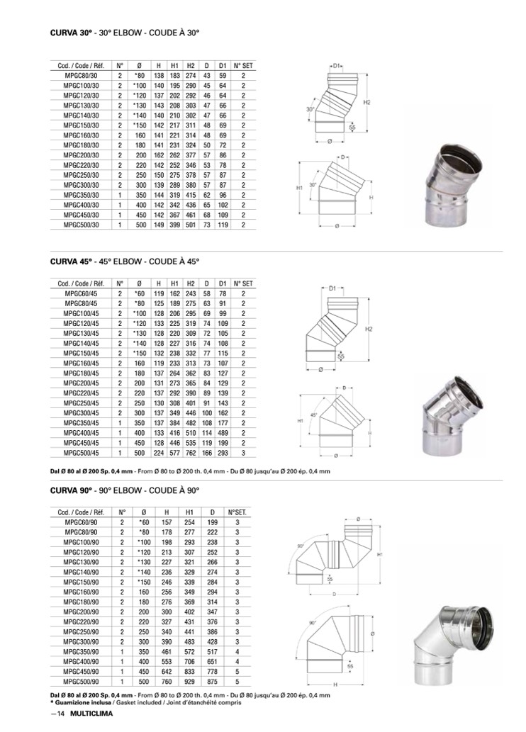 Dal Ø 80 al Ø 200 Sp. 0,4 mm - From Ø 80 to Ø 200 th. 0,4 mm - Du Ø 80 jusqu’au Ø 200 ép. 0,4 mm