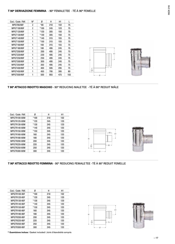 T 90° DERIVAZIONE FEMMINA - 90° FEMALETEE -TÉ À 90° FEMELLE