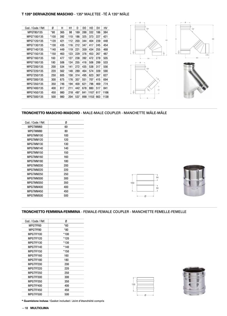 T 135° DERIVAZIONE MASCHIO - 135° MALETEE -TÉ À 135° MÂLE