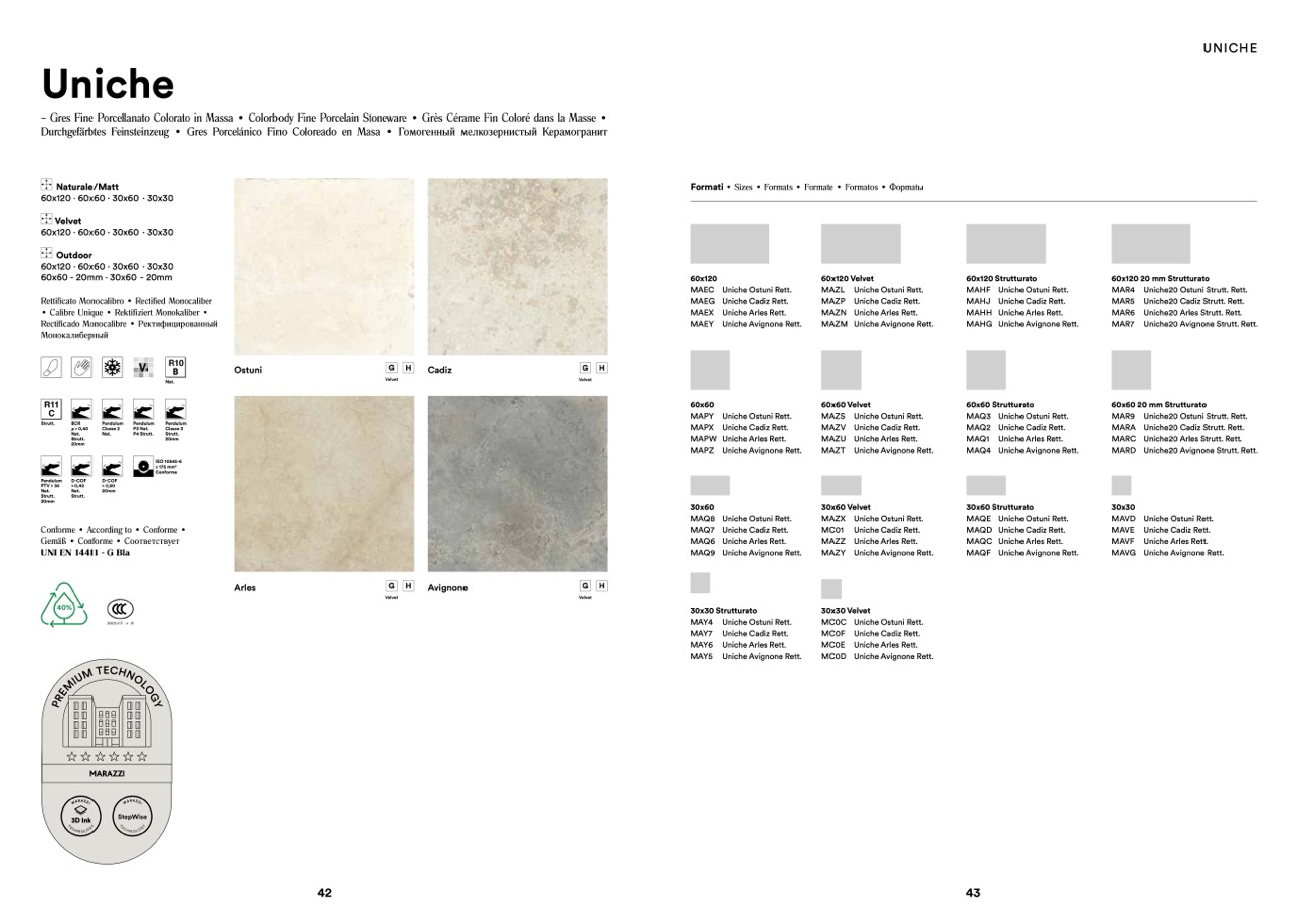 Durchgefärbtes Feinsteinzeug • Gres Porcelánico Fino Coloreado en Masa • Гомогенный мелкозернистый Керамогранит