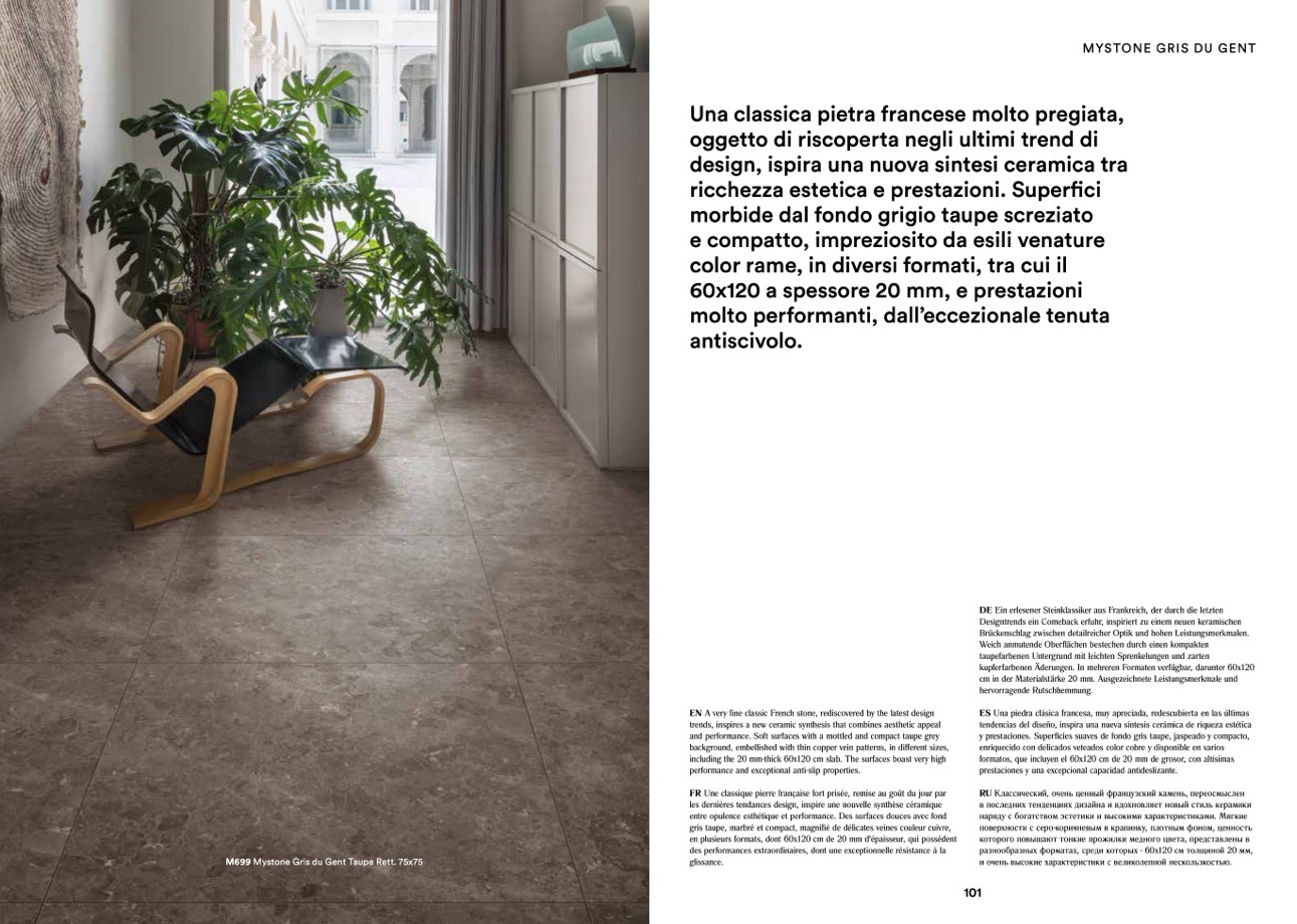 including the 20 mm-thick 60x120 cm slab. The surfaces boast very high