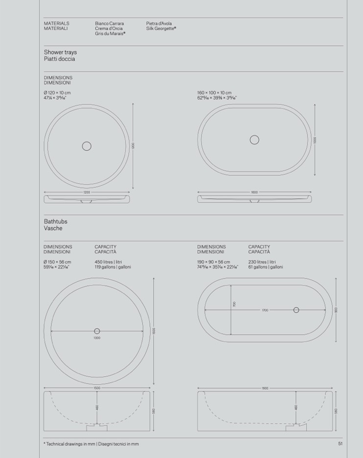 * Technical drawings in mm | Disegni tecnici in mm