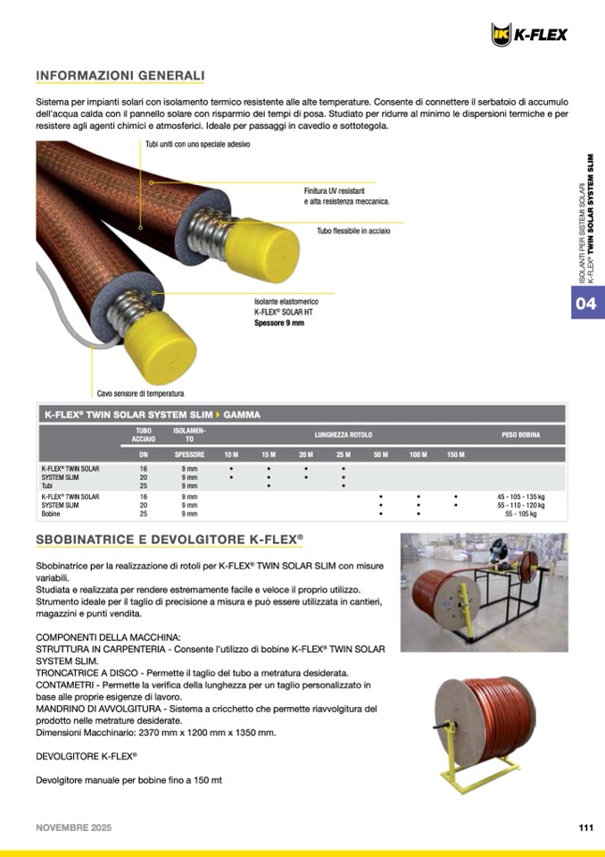 Sbobinatrice per la realizzazione di rotoli per K-FLEX® TWIN SOLAR SLIM con misur