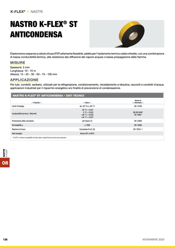 NASTRO K-FLEX® ST ANTICONDENSA DATI TECNICI