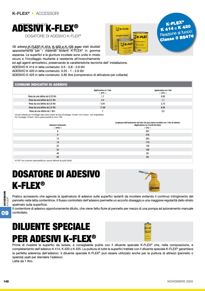 K-FLEX® non si assume responsabilità per consumi differenti da quelli indicati.
