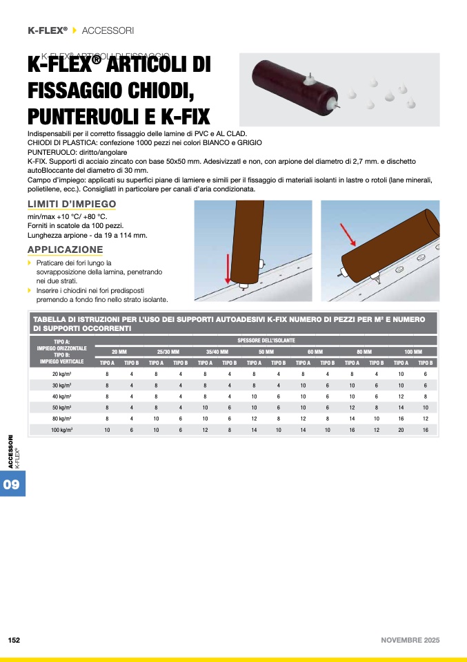 TABELLA DI ISTRUZIONI PER L’USO DEI SUPPORTI AUTOADESIVI K-FIX NUMERO DI PEZZI PER M2 E NUMER