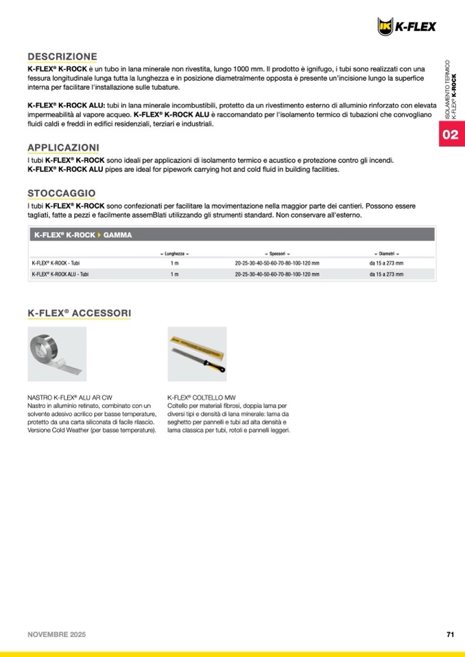 impermeabilità al vapore acqueo. K-FLEX® K-ROCK ALU è raccomandato per l'isolamento termico di tubazioni che convogliano
