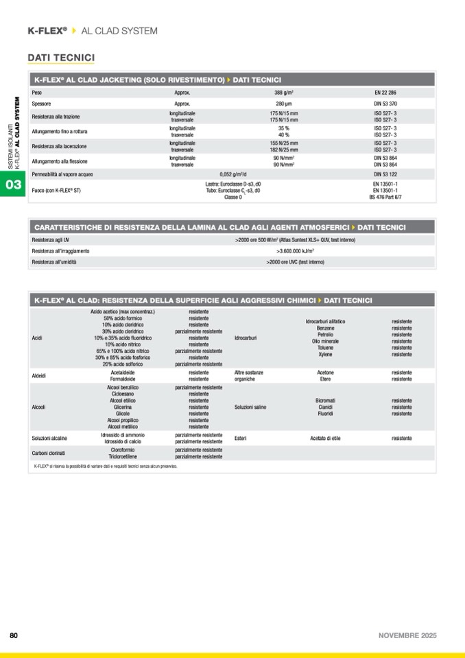 K-FLEX® AL CLAD: RESISTENZA DELLA SUPERFICIE AGLI AGGRESSIVI CHIMICI DATI TECNICI