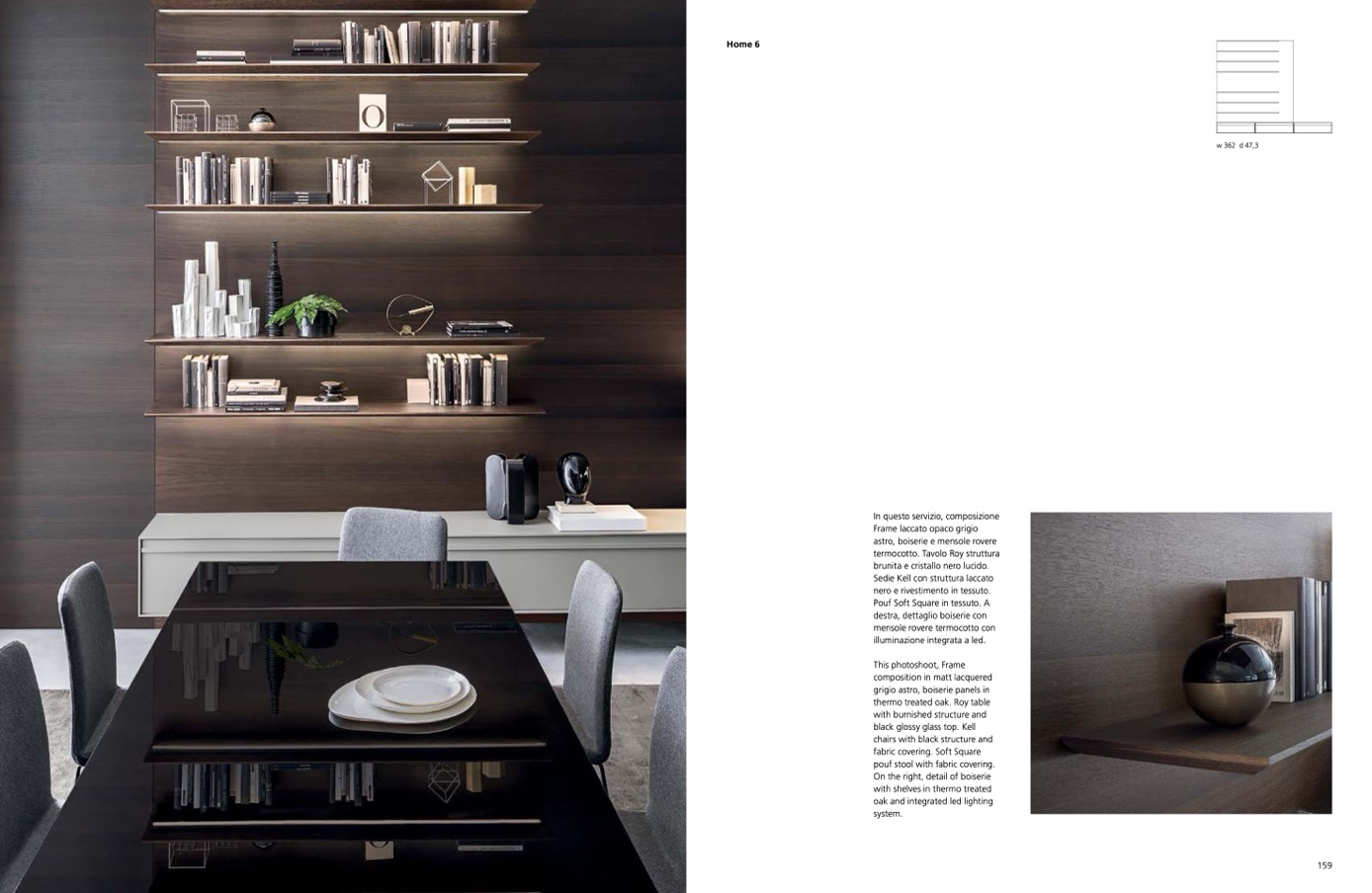 astro, boiserie e mensole rovere