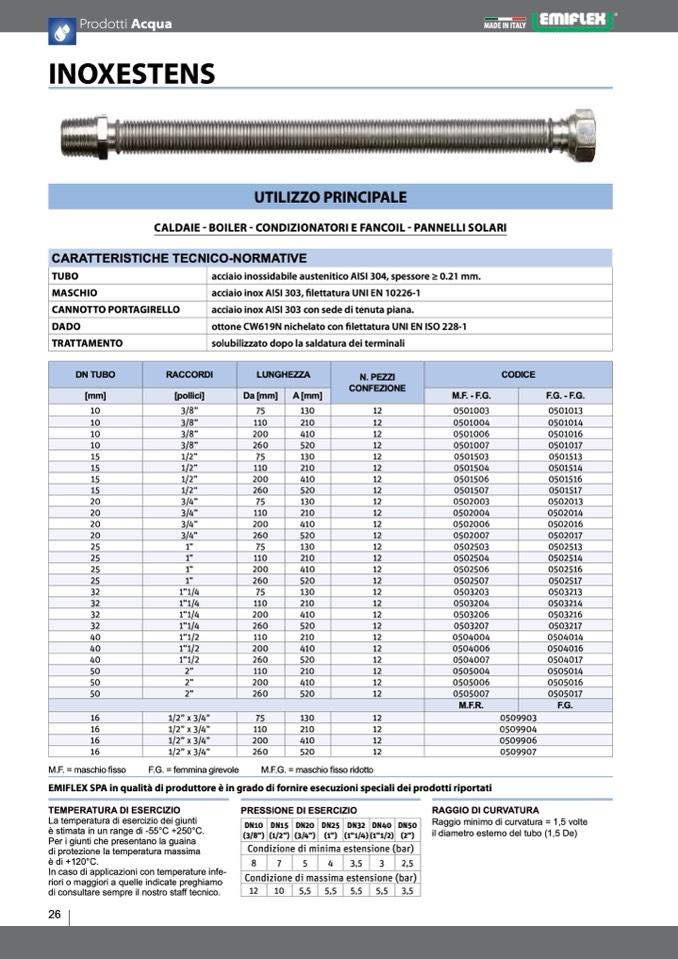 EMiFLEX SPA in qualità di produttore è in grado di fornire esecuzioni speciali dei prodotti riportati
