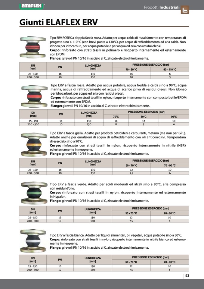 Tipo ERV a fascia verde. Adatto per acidi moderati ed alcali sino a 80°C, aria compressa