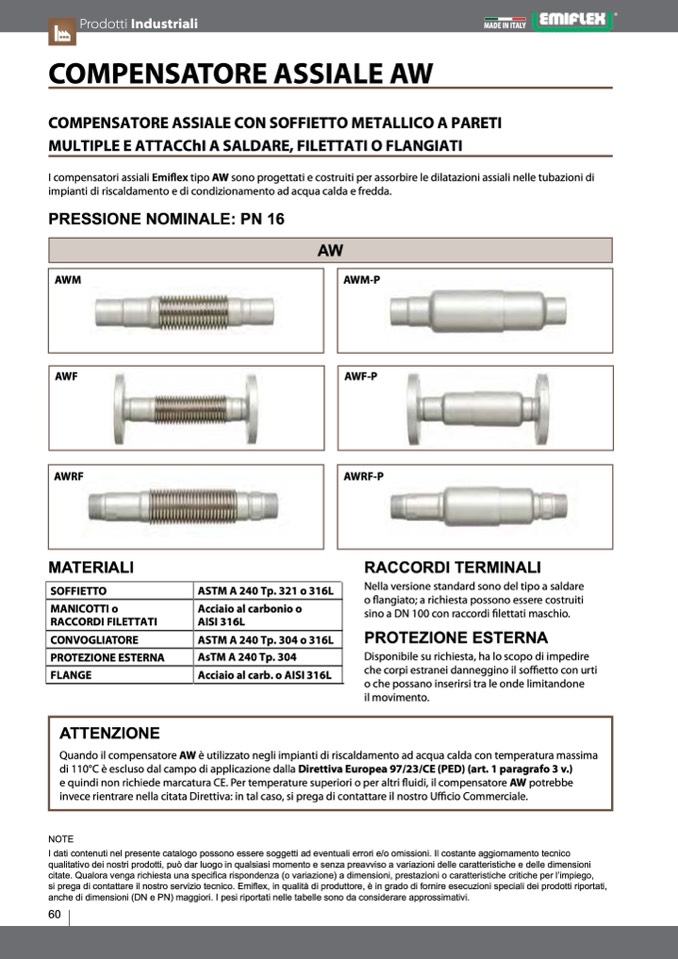 e quindi non richiede marcatura CE. per temperature superiori o per altri fluidi, il compensatore AW potrebbe