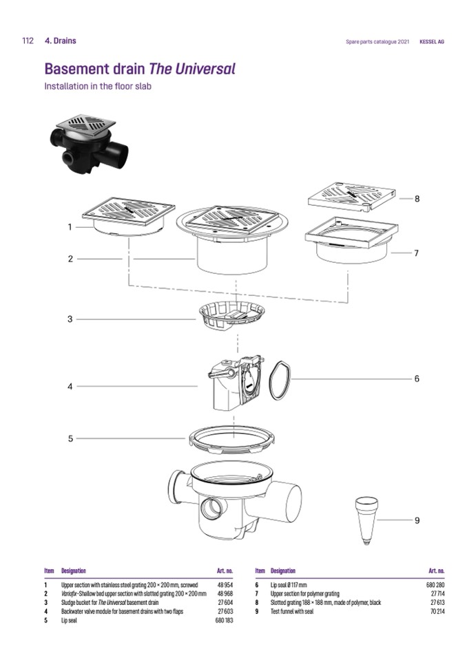 Variofix–Shallow bed upper section with slotted grating 200 × 200 mm
