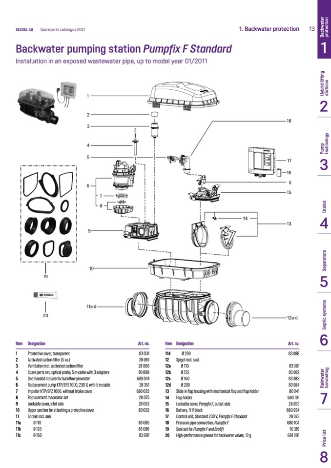 Replacement pump KTP/SPZ 1000, 230 V, with 5 m cable