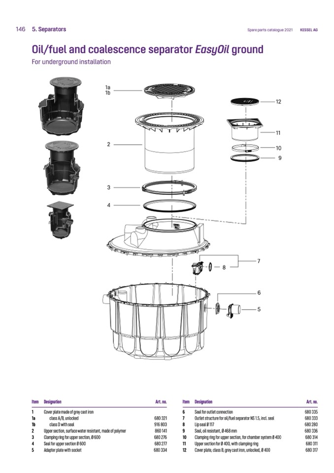 Outlet structure for oil/fuel separator NS 1.5, incl. seal