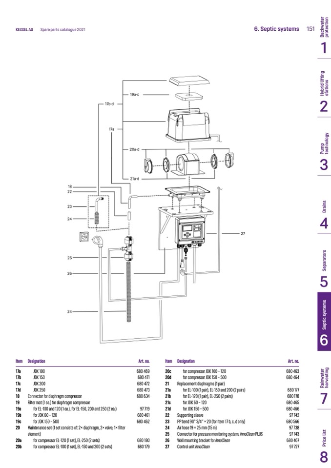 Maintenance set (1 set consists of: 2× diaphragm, 2× valve, 1× filter