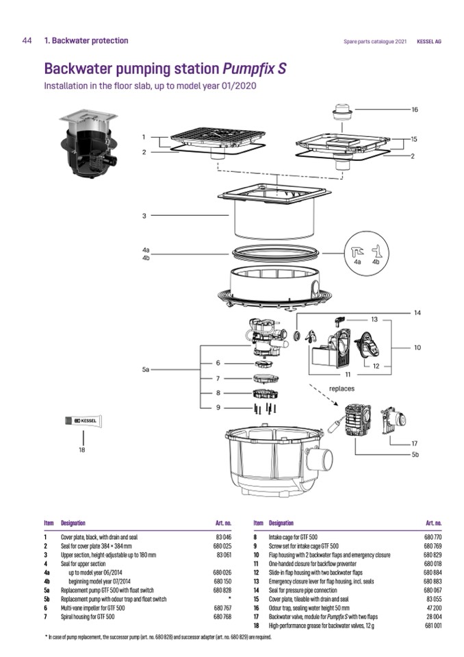 * In case of pump replacement, the successor pump (art. no. 680 828) and successor adapter (art. no. 680 829) are required.