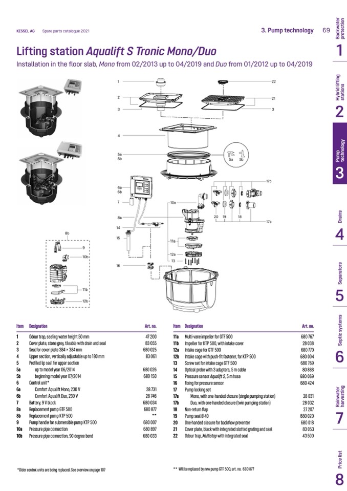** Will be replaced by new pump GTF 500, art. no. 680 877