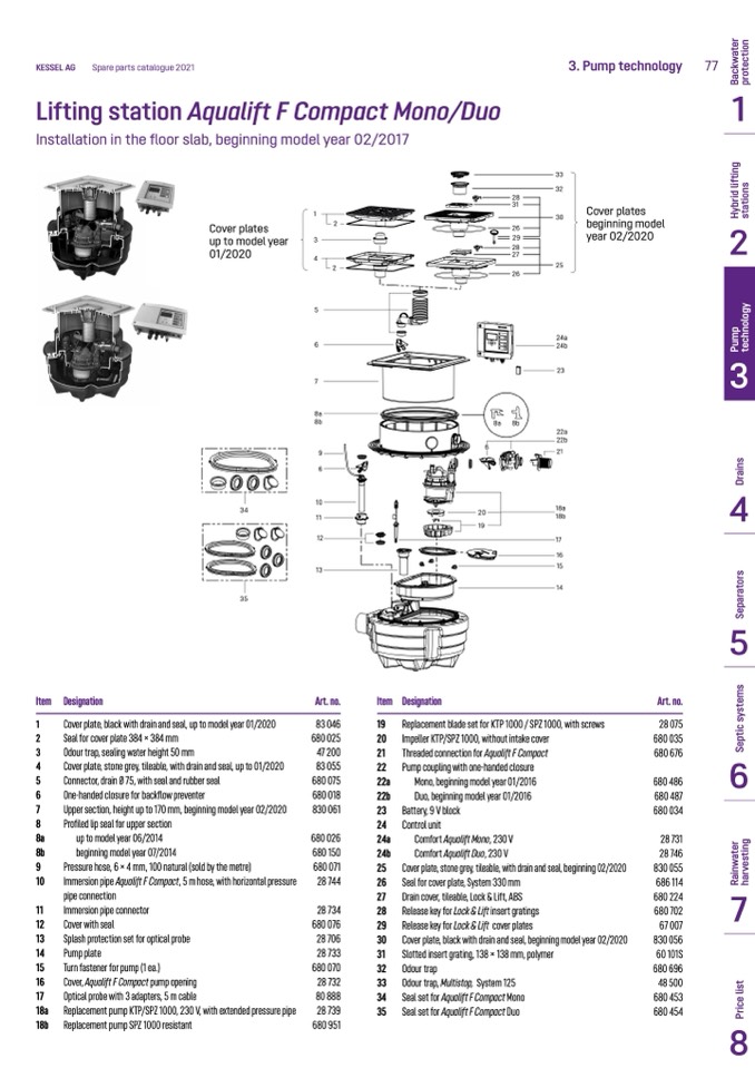 18a Replacement pump KTP/SPZ 1000, 230 V, with extended pressure pipe