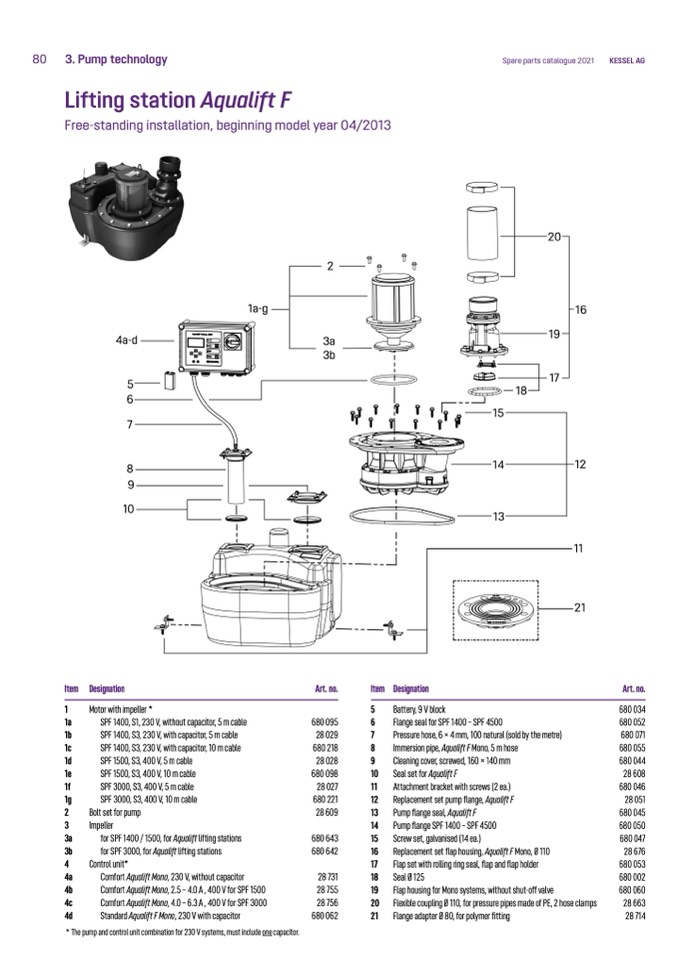 for SPF 3000, for Aqualift lifting stations