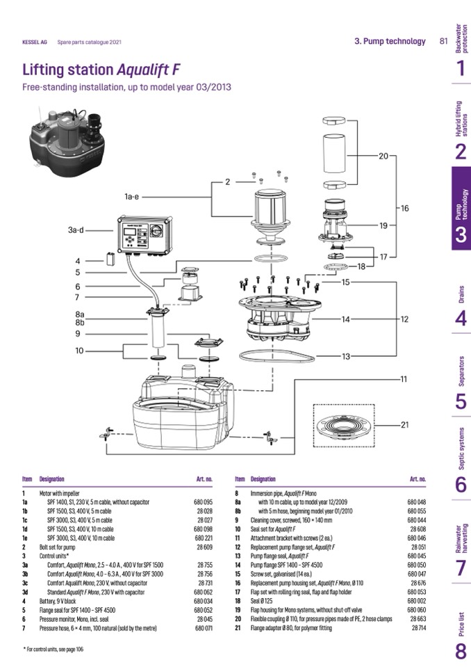 Comfort, Aqualift Mono, 2.5 – 4.0 A , 400 V for SPF 1500