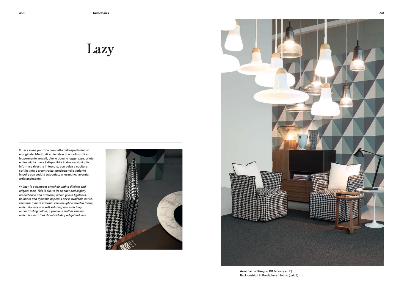 boldness and dynamic appeal. Lazy is available in two