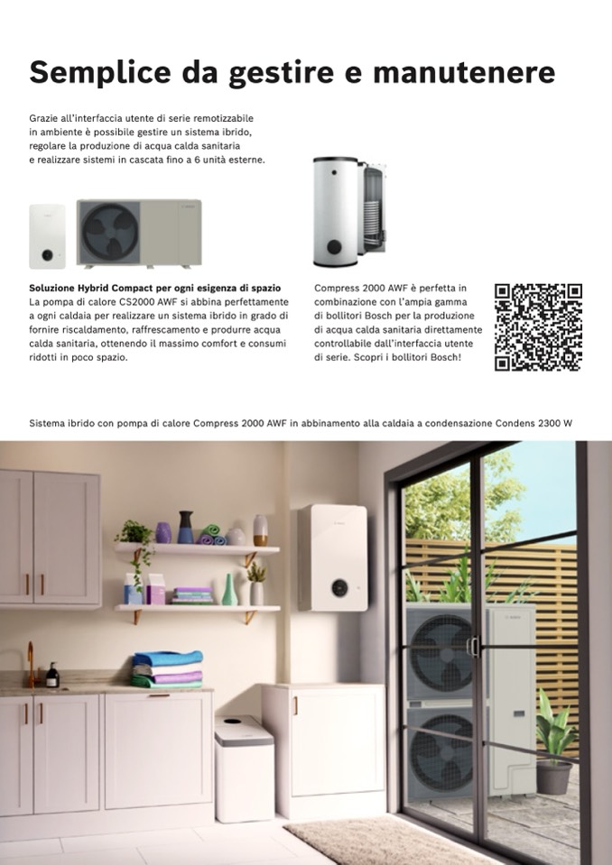 Sistema ibrido con pompa di calore Compress 2000 AWF in abbinamento alla caldaia a condensazione Condens 2300 W