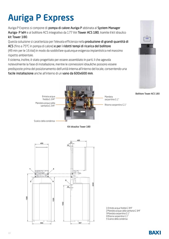 Auriga- P WH e al bollitore ACS integrativo da 177 litri Tower ACS 180, tramite il kit idraulic