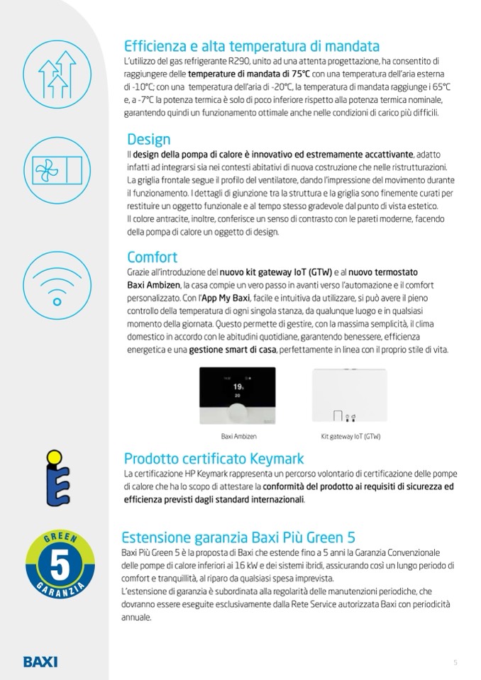 Baxi Più Green 5 è la proposta di Baxi che estende fino a 5 anni la Garanzia Convenzionale