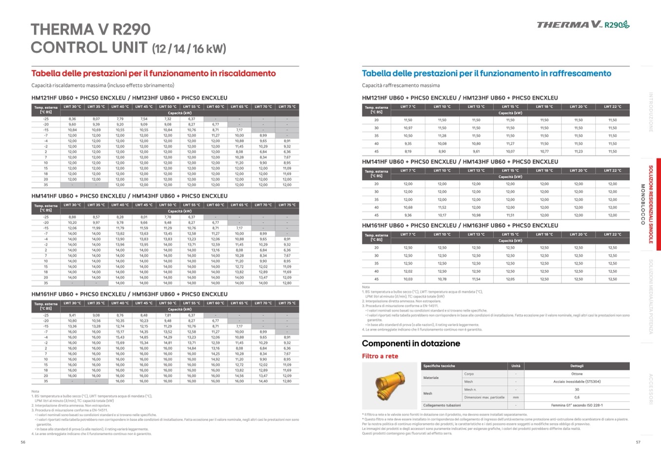 LPM: litri al minuto (l/min), TC: capacità totale (kW)