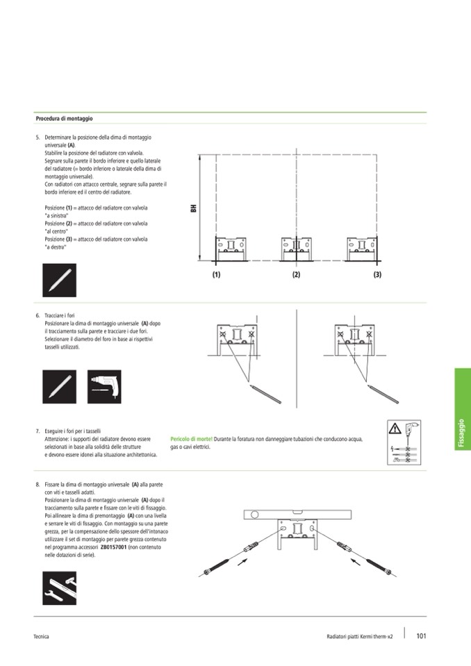 8. Fissare la dima di montaggio universale (A) alla parete