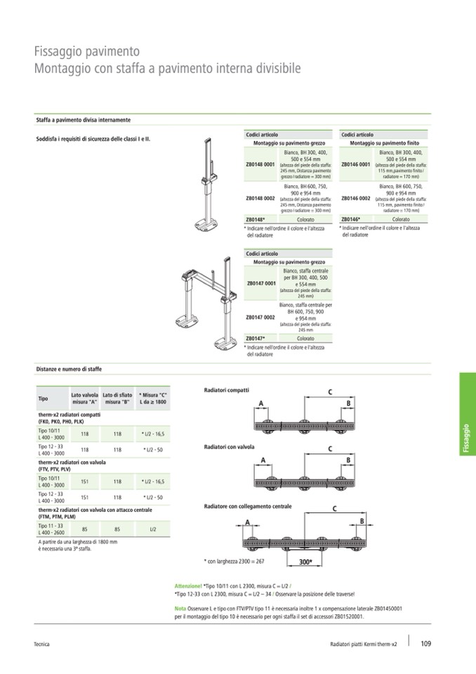 Nota Osservare L e tipo con FTV/PTV tipo 11 è necessaria inoltre 1 x compensazione laterale ZB01450001