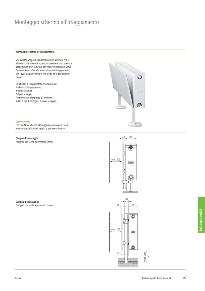 l'esterno. Kermi offre allo scopo schermi all'irraggiamento,