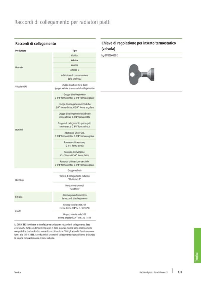 La DIN V 3838 definisce le interfacce tra radiatore e raccordo di collegamento. Essa