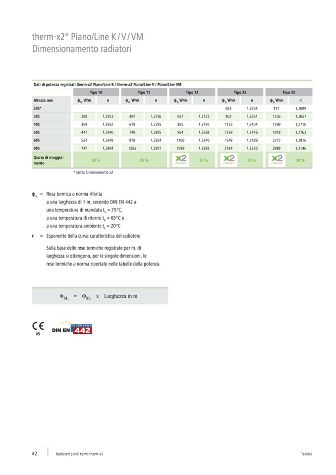 a una larghezza di 1 m, secondo DIN EN 442 a