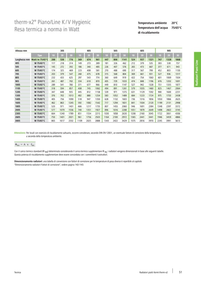 Con il carico termico standard (Φ RH) determinato considerando il carico termico supplementare Φ HL i radiatori vengono dimensionati in base alle seguenti tabelle.