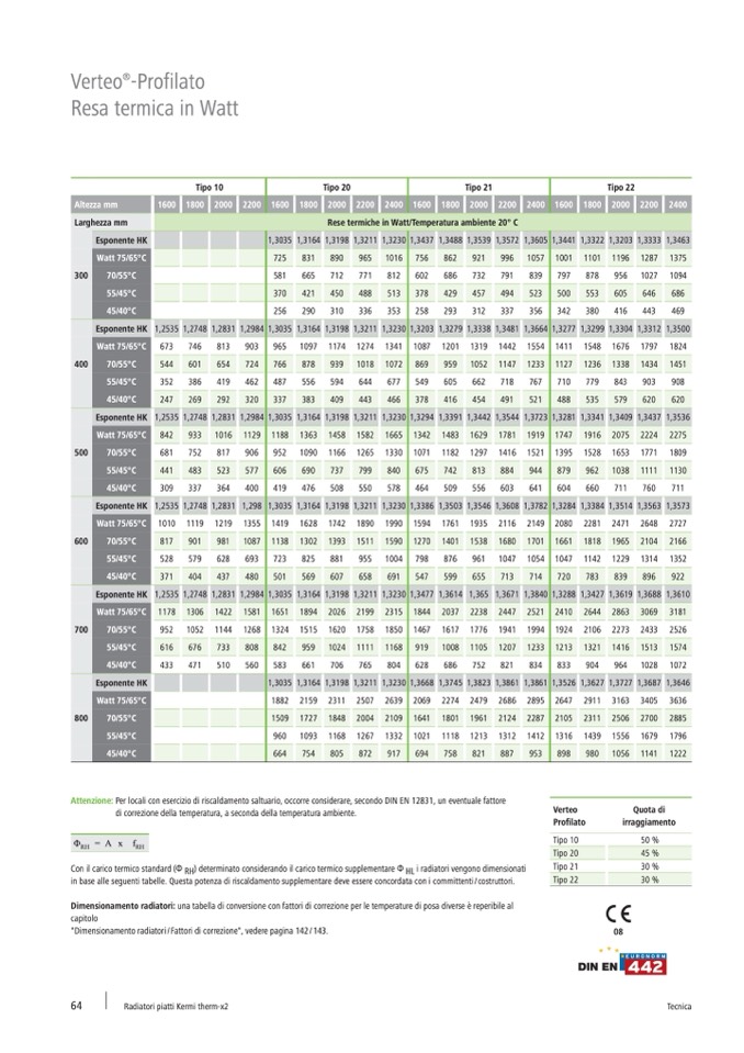 "Dimensionamento radiatori / Fattori di correzione", vedere pagina 142 / 143.
