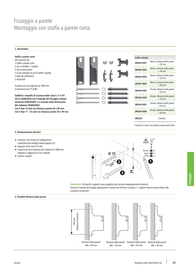 Tuttavia il metodo di fissaggio appropriato è sempre da verificare in opera e i supporti devono essere idonei alle