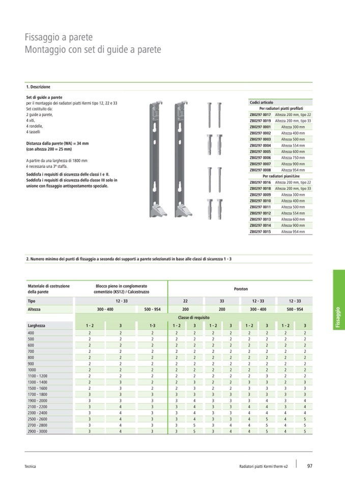 2. Numero minimo dei punti di fissaggio a seconda dei supporti a parete selezionati in base alle classi di sicurezza 1 - 3