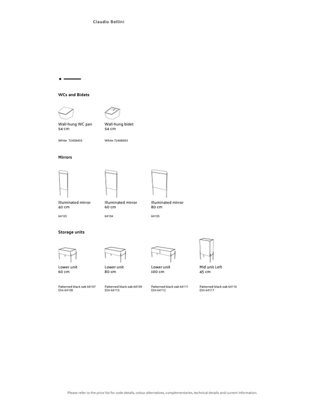 Please refer to the price list for code details, colour alternatives, complementaries, technical details and current information.