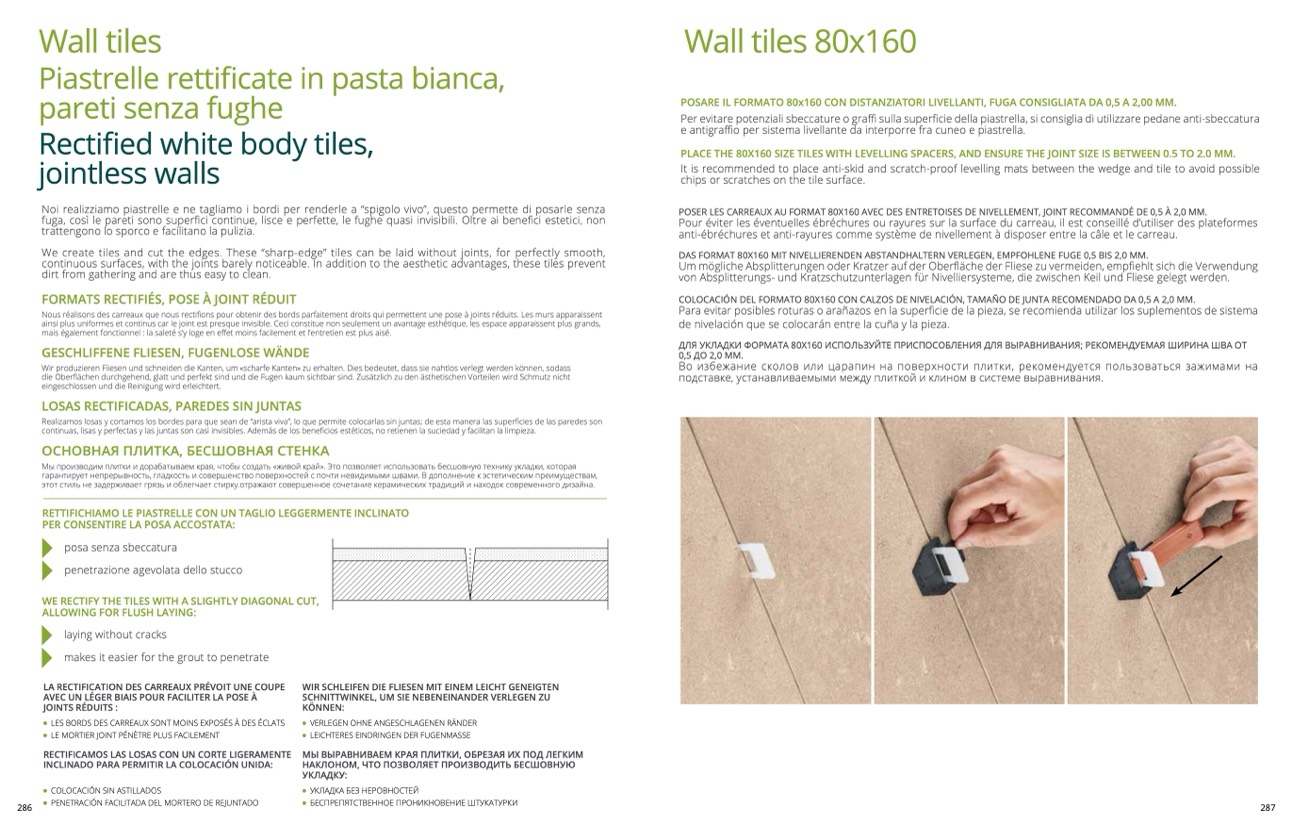 ДЛЯ УКЛАДКИ ФОРМАТА 80X160 ИСПОЛЬЗУЙТЕ ПРИСПОСОБЛЕНИЯ ДЛЯ ВЫРАВНИВАНИЯ; РЕКОМЕНДУЕМАЯ ШИРИНА ШВА ОТ