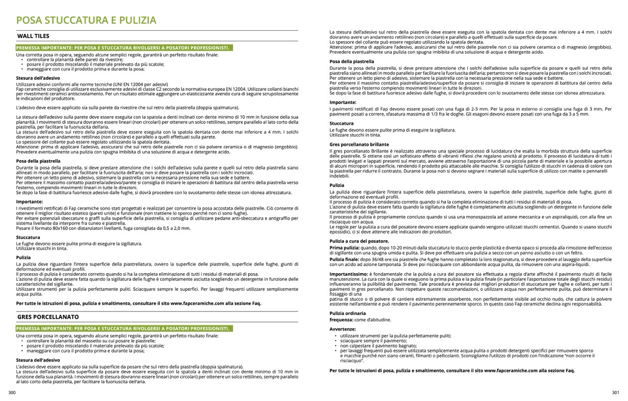 Per tutte le istruzioni di posa, pulizia e smaltimento, consultare il sito www.fapceramiche.com alla sezione Faq.
