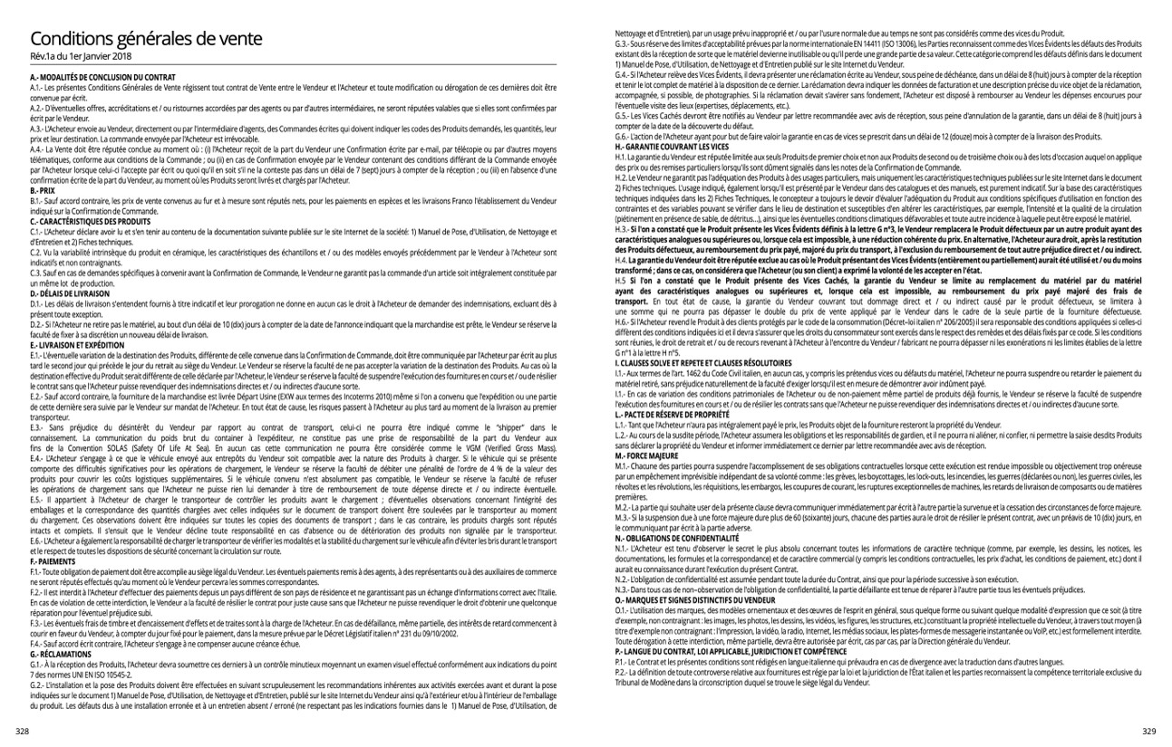 H.6.- Si l'Acheteur revend le Produit à des clients protégés par le code de la consommation (Décret–loi italien n° 206/2005) il sera responsable des conditions appliqu